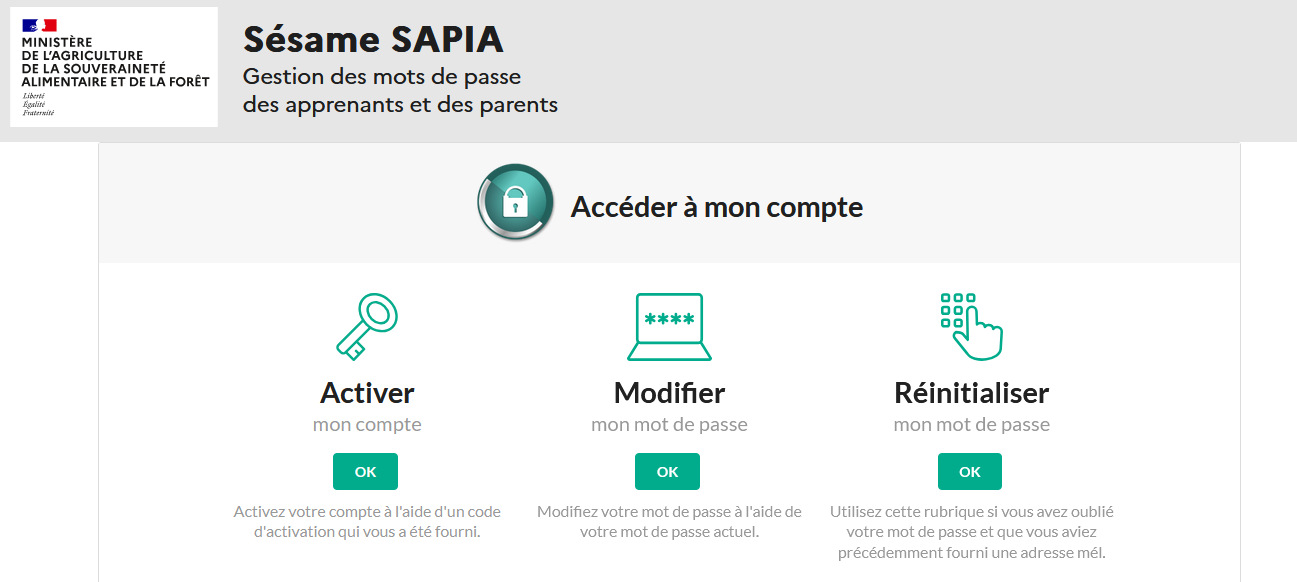 - Renseignez bien votre email afin de pouvoir réinitialiser votre mot de passe en cas d'oubli. Vous pourrez vous rendre sur SESAME SAPIA pour le réinitialiser